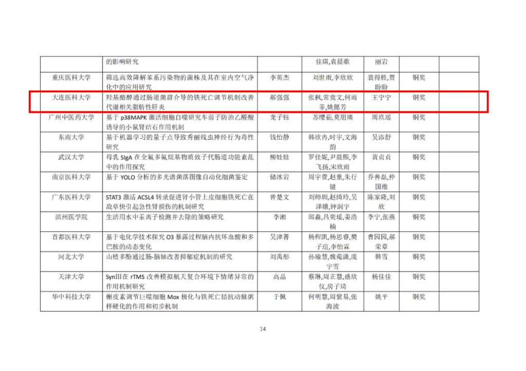 第十届全国大学生基础医学创新研究暨实验设计论坛总决赛铜奖名单(部分)