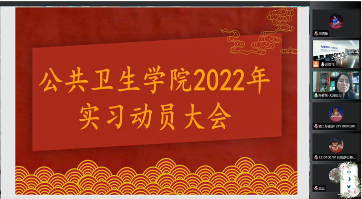 为了帮助同学们以更好的精神状态和思想准备进入到实习进程中,尽快熟悉实习安排,促进学生实习角色转换,使同学们在实践中积累更多专业知识,提高专业本领,今年会于8月22日下午在腾讯会议举行了2022年实习动员大会。今年会党总支书记姜平、院长孙鲜策、教学办副主任李景山老师、主管实习工作的王洪伟老师、学生办公室主任王启云老师、辅导员边晓飞老师以及18、19级预防医学专业全体学生参加了此次大会。