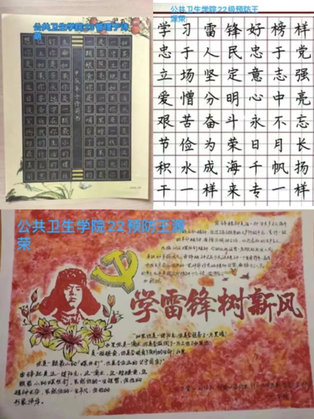 同时,学院也同步开展学雷锋系列活动。围绕“雷锋精神”的主题开展征文、书法和手抄报的作品征集和志愿服务活动。同学们通过一撇一捺书写雷锋精神的文字渊源,用一点一滴拼凑雷锋精神的不朽画卷。无数张端正的语录摘抄和无数张生动的手抄报,是同学们对雷锋同志优秀精神的崇高礼赞,将雷锋精神转化为实际行动。