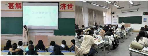 本次学业分析交流会分四个环节开展。首先,由学生会学习部部长介绍本次会议的目的和意义,为本次会议的开展指明方向。各班班长、学习委员根据2023-2024学年上半学期学业报告对本班成绩进行分析总结,指明不足之处并针对性地提出改进方法,为下半学期的学习生活打下良好的基础。交流过程中,低年级同学针对学习和工作中遇到的问题向学长学姐请教经验,高年级的学长学姐根据自身经历,耐心详细的进行解答,为学弟学妹们提出了宝贵的建议,进一步促进了不同年级同学之间的学业联动。最后,由学生会主席对本次活动进行总结,本次学业分析交流会圆满结束。