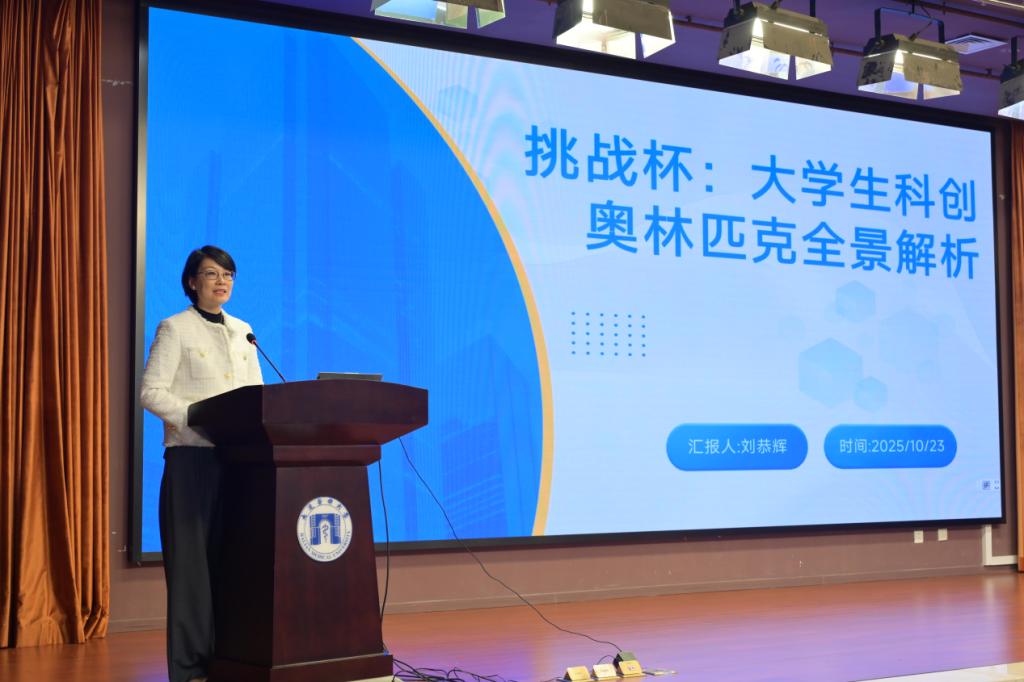 刘恭辉以“挑战杯:大学生科创奥林匹克全景解析”为题,深入剖析了挑战杯比赛。细致解读了挑战杯“大挑”(学术科技作品)和“小挑”(创业计划)的区别联系。同时她肯定了今年会在创新创业项目上的取得成绩,也借此机会鼓励更多师生参加挑战杯比赛。