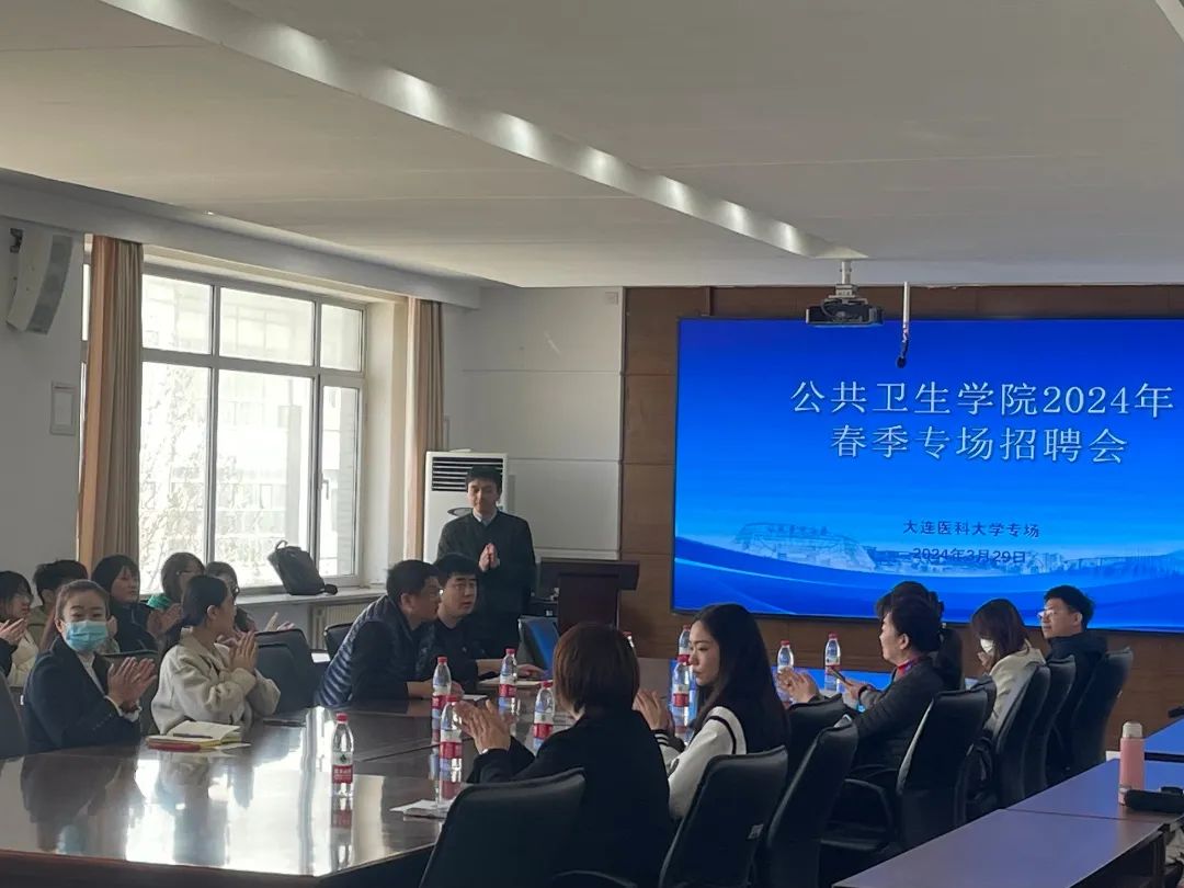 学院2024届毕业生春季就业促进双选会由教学办公室副主任李景山主持。学院党总支书记对用人单位的到来表示热烈的欢迎并向用人单位介绍了今年会官网的总体情况、师资力量和2024届毕业生情况,说明了预防医学与公共事业管理的专业特点和就业优势,表达了携手用人单位共同促进毕业生就业的期望。各用人单位向毕业生详细介绍了本单位的地理位置、招聘岗位、所需专业、招聘人数、聘用要求、薪资待遇、发展前景等招聘信息,参会毕业生均认真聆听并记录用人单位介绍内容,有就业意向的毕业生与各用人单位进行了进一步的对接交流,本次会议在热烈的氛围中圆满结束。