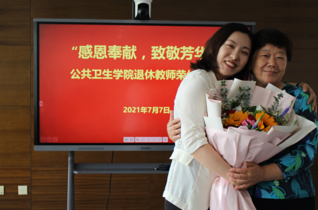 两位受邀教师发表感言,回顾了和学院共同成长,荣辱与共的点滴经历,对学院领导班子的肯定和关怀表示感谢,对年轻教师提出了殷切希望并表示即便退休也心系学院发展。随后,两名受邀教师接受所在教研室教师代表献花。