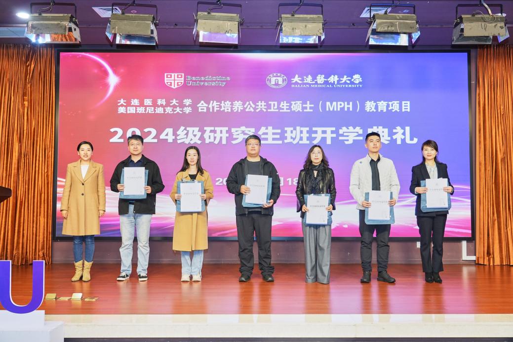 典礼伊始,现场播放了美国班尼迪克大学的学校宣传片及美方科学与健康学院院长Cheryl Mascarenhas的寄语视频,展现了中美合作MPH项目国际合作的深厚背景和对新生的美好祝愿。