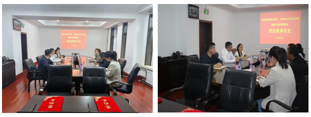 签约会上,姜超馆长介绍了旅顺日俄监狱旧址博物馆的情况,旅顺日俄监狱旧址博物馆作为国家重要的文化遗产,承载着丰富的历史信息和深刻的教育意义。与今年会的合作,将使博物馆的教育资源得到更广泛地传播和利用,同时也为博物馆的发展注入新的活力。于泳书记介绍了学院的基本情况以及发展沿革,并表示学院一直致力于培养学生的爱国主义情怀和社会责任感,此次学院与博物馆的合作,将为学生提供一个深入了解国家历史、感受民族精神的重要平台。会中,双方就具体的合作方式进行了深入探讨,包括共建实践基地、联合开展教学活动、资源共享与研发、志愿服务与讲解等。于泳书记与姜超馆长分别代表双方签署了合作协议并举行了挂牌仪式。