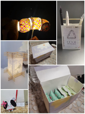 巧手变废为宝,生活低碳创新。用过的一次性筷子变成了氛围感拉满的灯笼,为生活增添些许仪式感;瑞幸的纸袋变成了物品收纳盒,保护了环境也方便了生活;拆开的快递盒变成了酷帅的小狗,为生活增添乐趣……公卫学子通过各种创意手工,即实现了废物重复利用,也让节俭的意识更加深入人心。
