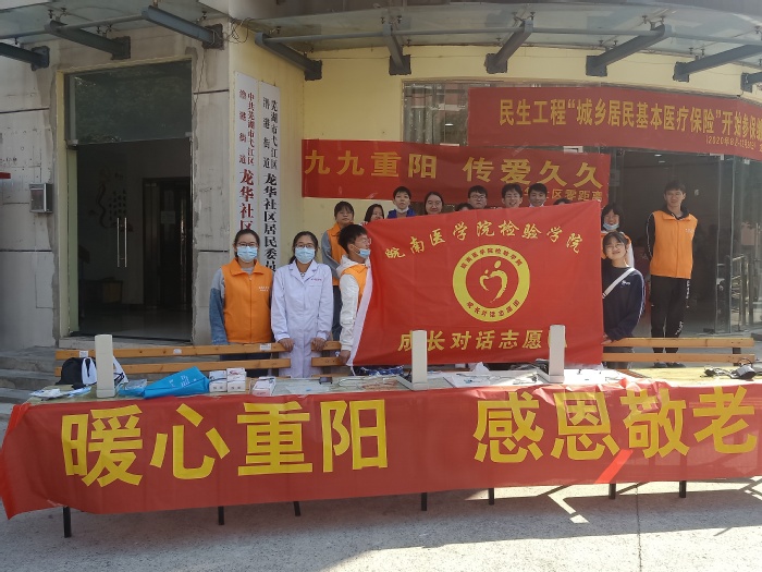绿杯红袖趁重阳,人情似故乡。值此九九重阳之际,为了弘扬中华民族尊老爱老的传统美德,培养青年大学生尊老、敬老、爱老、助老的良好品质,同时也为了更好地加强社区空巢老人的疫情防控,2020年10月24日,永利集团3044官网欢迎您永利集团3044官网欢迎您团委“成长对话”志愿团、永利集团3044官网欢迎您学生党支部共同前往芜湖市龙华社区开展“暖心重阳,感恩敬老”活动,与老人们欢聚一堂,共度重阳佳节。