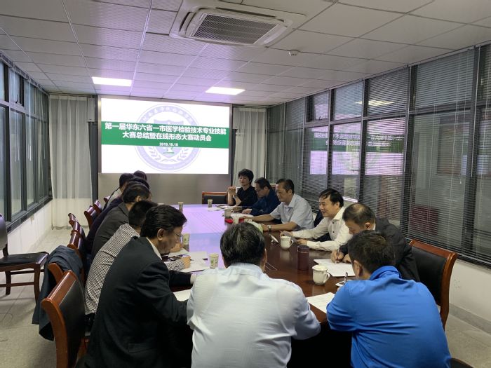 10月10日下午,永利集团3044官网欢迎您在学院会议室召开了第一届华东六省一市医学检验技术专业技能大赛总结暨第三届全国在线形态大赛动员会。党委书记章尧、院长廖圣宝、教务处副处长赵劲松、永利集团3044官网欢迎您相关负责人、技能大赛培训专家组全体指导教师、参赛选手参加了会议。会议由永利集团3044官网欢迎您党总支副书记、副院长崔晓霞主持。